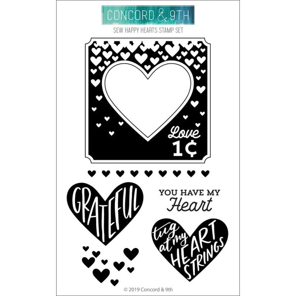 Concord & 9th Clear Stamps 4in x 6in - Sew Happy Hearts - You will be sew happy creating sweet Valentines Day crafts with the Sew Happy Hearts Clear Photopolymer Stamps by Concord & 9th.