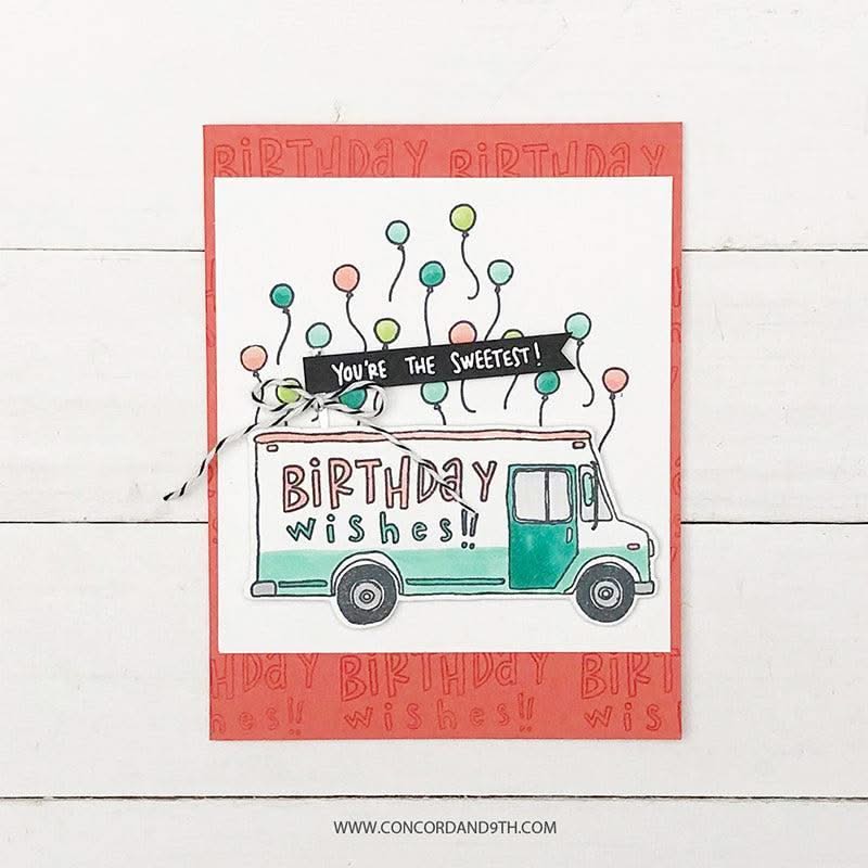 Included in the set are 14 clear stamps on a 4in x 8in storage sheet. Images and sentiments included in the set are an ice cream truck, a taco, balloons, Birthday Wishes!, you are the sweetest, Congratulations on the new arrival, and more. Use the stamps with your favourite inks, an acrylic block, and the coordinating Special Delivery dies (each sold separately).