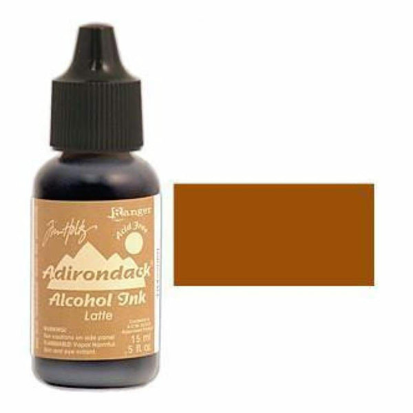 Tim Holtz Alcohol Ink Latte .5oz. Alcohol Inks are permanent, fast-drying, dye inks formulated to create colorful polished effects on non-porous surfaces. Lighten, blend and remove colors with alcohol blending solution. Available in a variety of colors, each sold separately. This package contains one .5 fl oz bottle of alcohol ink.