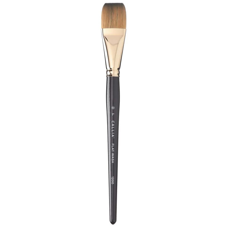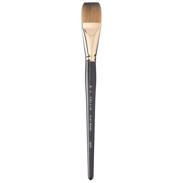 Willow Wolfe Callia Artist Flat Wash Brush 1" - Callia Artist Brushes, designed by renowned artist, author and educator, Willow Wolfe, bring together innovative synthetics and precise craftsmanship, making them ideal for acrylic, oil, and watercolour painting. They come in a variety of traditional and unique shapes and sizes, using synthetic 100% cruelty-free blends like Synthetic Kolinsky, Synthetic Bristle, Synthetic Sable, and Golden Taklon. These brushes are handcrafted for excellent spring and snap, precise colour control, and are equipped with high-quality brass ferrules. They maintain their shape and feature Willow's signature six-layer, crack-resistant handle. Callia is designed by artists for artists to paint beautifully and be your trusted and treasured brush of choice! This package contains one Flat Wash paint brush. Size: 1.