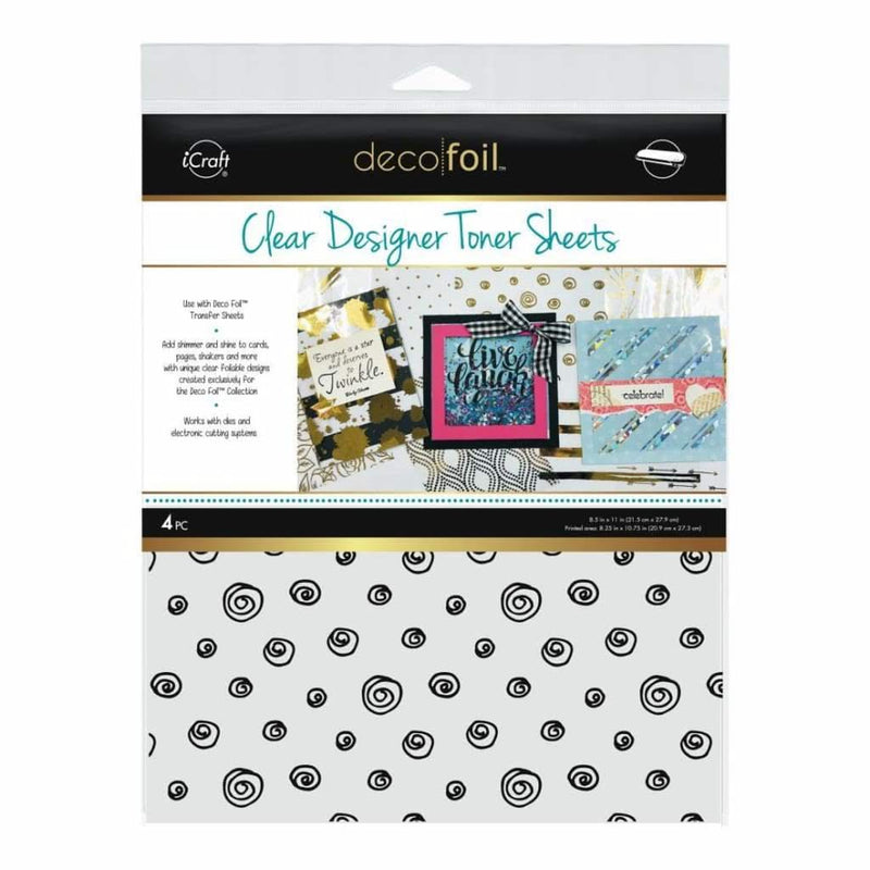 Deco Foil Clear Toner Sheets 8.5"x11" - 4 pack - Doodles. Add shimmer and shine to cards, pages, shakers and more with the Deco Foil Clear Designer Toner Sheets! These unique foil-able designs can be used with Deco Foil Transfer Sheets, alcohol inks, and markers (each sold separately) to create one-of-a-kind designs. Can be die cut or used with electronic cutting systems and are compatible with most hot laminators (each sold separately). Package includes 4 sheets. Sheet size: 8.5in x 11in (21.5cm x 27.9cm).