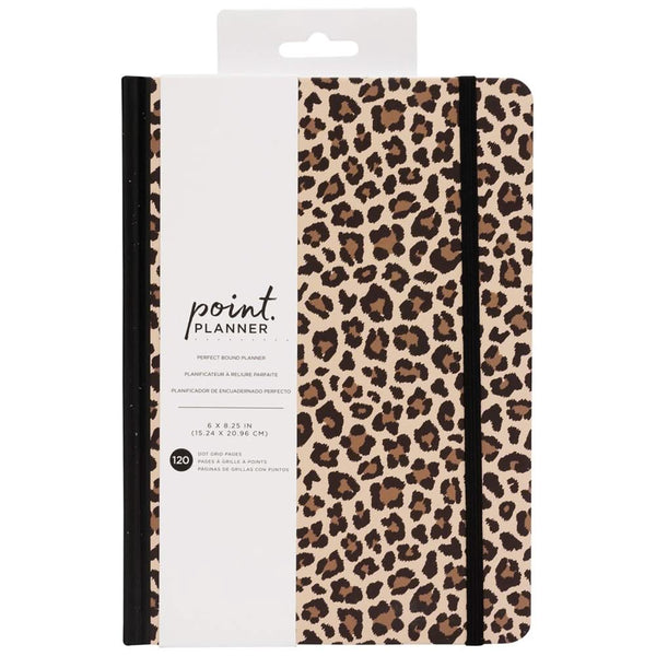 AC Point Planner Perfect Bound Planner 6"X8" Leopard - Dot Grid - 120 Sheets - Plan it out, sketch it up, and get creative with the Point Planner by American Crafts! It's the perfect customisable planner right in the palm of your hand. The dot grid pages give you the flexibility to create whatever you like, but the stability of a grid if you need it. Completely customisable, add your own calendars, lists or pair with other Point Planner products (sold separately) for a unique, customised planner. This package contains one American Crafts Point Planner with 120 Dot Grid Pages, Leopard, 6x8.25 inches. Elastic closure.