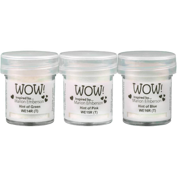 WOW! Embossing Powder Trio - Pastel Pearls - Embossing powders are the perfect way to add sparkle along with a raised image to scrapbooking pages, greeting cards, mixed media, altered art and more! Sprinkle over wet ink, heat and see the magic rise, shine and sparkle! Available in a variety of colours and styles, each sold separately.