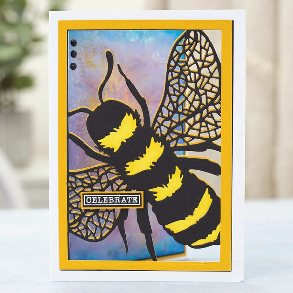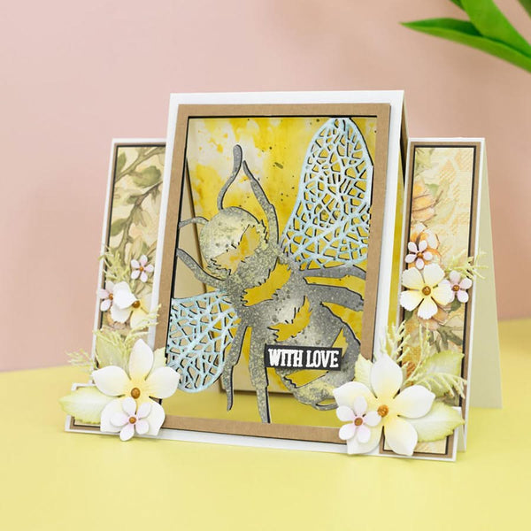 Poppy Crafts Cutting Dies #839 - Bee Card Front. Create amazing papercraft projects with this Poppy Crafts cutting die! These are a great idea for all your greeting cards, place cards, scrapbooking and so much more. These Cutting Dies are designed to cut through paper, cardstock and other thin materials and are compatible with most leading die-cutting machines (sold separately). Size: 11cm x 15.5cm.