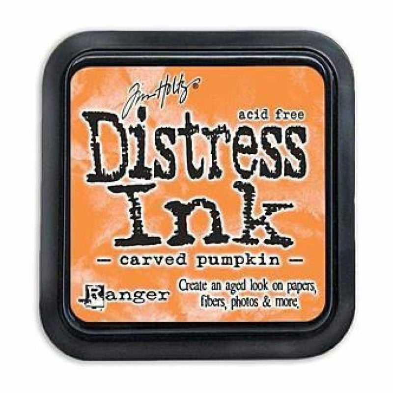 Tim Holtz Distress Ink Pad - Carved Pumpkin - Distress Inks are a collection of acid-free, non-toxic, fade-resistant, water-based dye inks. They're perfect for the popular vintage, stained and aged effects used in altered books, scrapbook pages, cards and home decor projects. Pads have raised felt, are stackable and can be re-inked with matching re-inker. This package contains one 2-1/4x2-1/4 inch ink pad. Comes in a variety of distressed colours. Each sold separately. Acid free. Non-toxic. Conforms to ASTM D 4236. Made in USA.