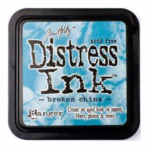 Tim Holtz Distress Ink Pad - Broken China - Distress Inks are a collection of acid-free, non-toxic, fade-resistant, water-based dye inks. They're perfect for the popular vintage, stained and aged effects used in altered books, scrapbook pages, cards and home decor projects. Pads have raised felt, are stackable and can be re-inked with matching re-inker. This package contains one 2-1/4x2-1/4 inch ink pad. Comes in a variety of distressed colours. Each sold separately. Acid free. Non-toxic. Conforms to ASTM D 4236. Made in USA.