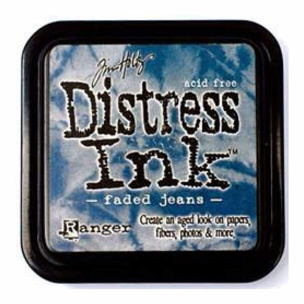 Tim Holtz Distress Ink Pad - Faded Jeans - Distress Inks are a collection of acid-free, non-toxic, fade-resistant, water-based dye inks. They're perfect for the popular vintage, stained and aged effects used in altered books, scrapbook pages, cards and home decor projects. Pads have raised felt, are stackable and can be re-inked with matching re-inker. This package contains one 2-1/4x2-1/4 inch ink pad. Comes in a variety of distressed colours. Each sold separately. Acid free. Non-toxic. Conforms to ASTM D 4236. Made in USA.