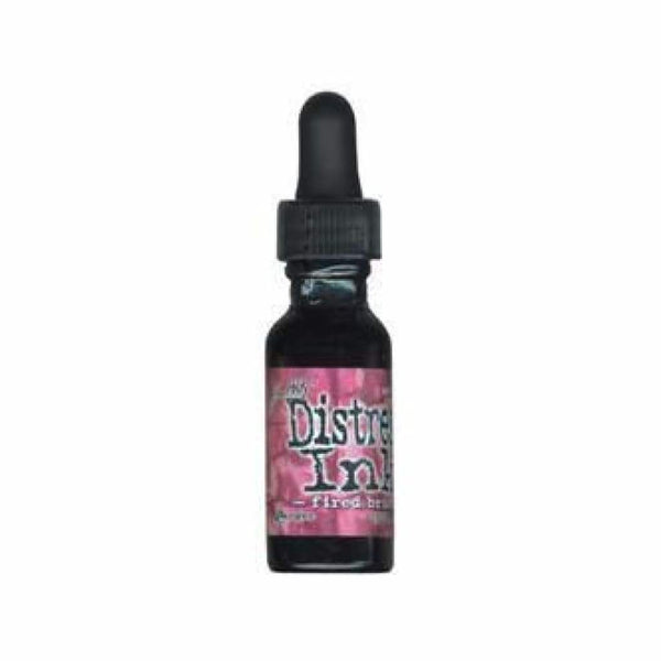 Tim Holtz Distress Ink Reinkers 14ml - Fired Brick. Re-Inkers can be used to re-ink Distress Ink Pads. Re-Inkers are available in a 0.5oz amber glass bottle with an eye drop applicator. Water based, fade resistant, acid free and non toxic. Create an aged look on papers, fibres, photos and more! Conforms to ASTM D4236. Comes in a variety of colours. Each sold separately.