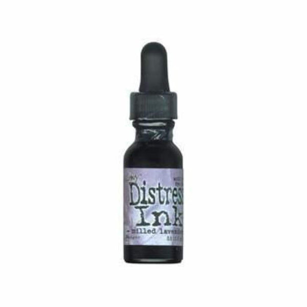 Tim Holtz Distress Ink Pad Re-inker 14ml - Milled Lavender. Re-Inkers can be used to re-ink Distress Ink Pads. Re-Inkers are available in a 0.5oz amber glass bottle with an eye drop applicator. Water based, fade resistant, acid free and non toxic. Create an aged look on papers, fibres, photos and more! Conforms to ASTM D4236. Comes in a variety of colours. Each sold separately.
