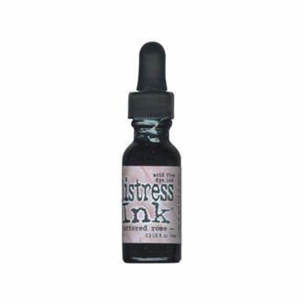 Tim Holtz Distress Ink Pad Re-inker 14ml - Tattered Rose. Re-Inkers can be used to re-ink Distress Ink Pads. Re-Inkers are available in a 0.5oz amber glass bottle with an eye drop applicator. Water based, fade resistant, acid free and non toxic. Create an aged look on papers, fibres, photos and more! Conforms to ASTM D4236. Comes in a variety of colours. Each sold separately.