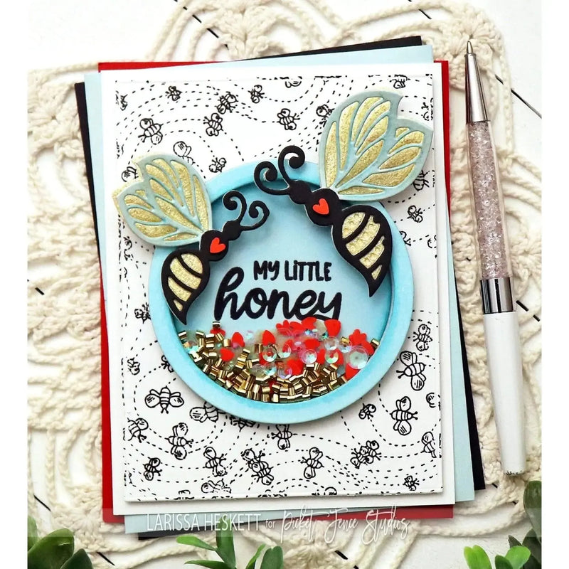 Picket Fence Studios Clear Background Stamp - Buzzing By. This stamp set features buzzing bees all around. This stamp adheres to an acrylic block and can be used with your favourite inks, markers, embossing powders, watercolours, coloured pencils, and other crafting mediums (sold separately). These stamps can be used to make cards, scrapbook pages, tags, journal and planner pages, and other paper crafting and mixed media projects. Size: 6"x 6".