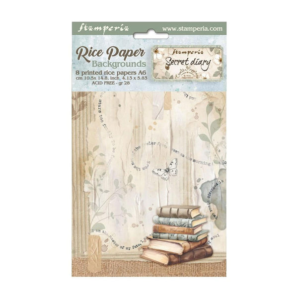 Stamperia Assorted Rice Paper Backgrounds A6 8/Sheets - Create Happiness Secret Diary. The Create Happiness Secret Diary Collection will work perfectly with all your scrapbooking and paper-crafting projects! Thin, printed rice paper - excellent quality. Transparent yet strong. If using images versus the whole sheet, tearing versus cutting around images is recommended. Use as decoupage on glass, canvas, plastic, wood, cardstock and so forth. Decoupage adhesive is recommended for best results. This pack includes eight assorted A6 rice papers. Size of sheet: A6 (105mm x 148mm) 28grams.