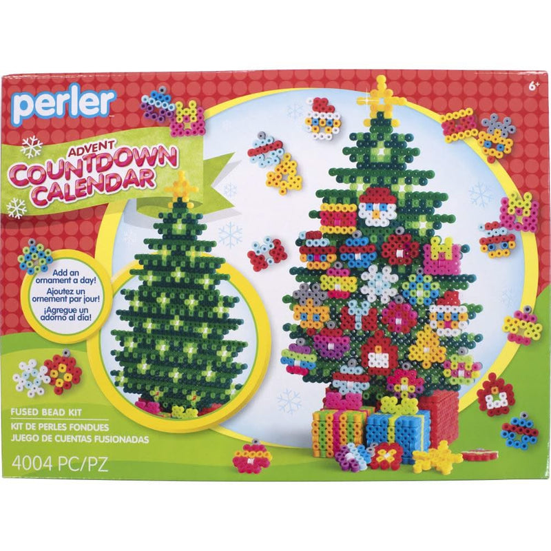 Perler Fused Bead Kit 3D Advent Calendar - Create a 3-dimensional Christmas tree, 24 ornaments, and other accessories with this fused bead kit. Count down to Christmas by adding an ornament to the tree each day. This makes a great family project for the holiday season. Detailed illustrated instructions included. Perler beads are great for promoting fine motor skills, colour recognition, and imaginative play. This package contains 4000 beads, 2 pegboards (large interlocking squares), pattern sheet with instructions and ironing paper. Recommended ages six years and up.