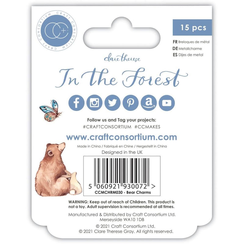 Craft Consortium In The Forest Metal Charms 15 pack - Bear - 'In the Forest' is the sixth instalment in our exclusive partnership, and is a bold collection, of Autumnal and Winter colours following through to those early Spring florals, as we follow our protagonist, the adorable bear and it's friends in the open wilderness.