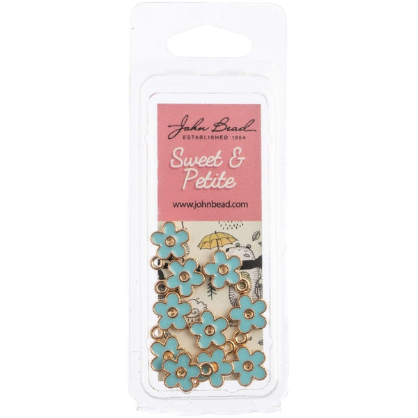 John Bead Sweet & Petite Charms - Small Flower Blue, 10x12mm 10 pack - These very sweet enamel charms can be used by jewellery makers to add a whimsical touch to their projects. They are also ideal for paper crafting and sewing projects. With 72 different charms in the collection, designers will have many options to play with.
