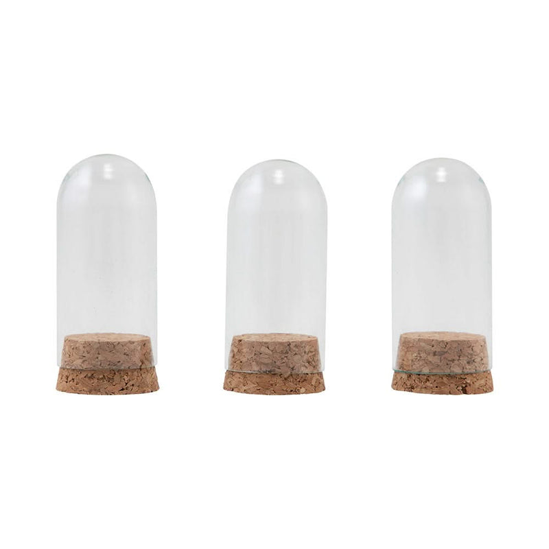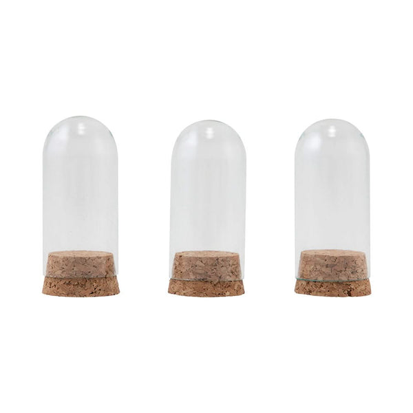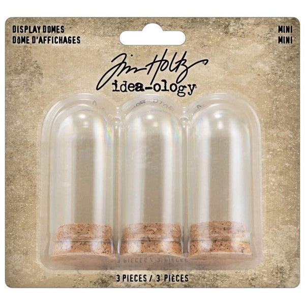 Tim Holtz Idea-Ology Display Domes Mini - This package of three Mini Display Domes is designed by Tim Holtz and is part of the Halloween Collection for Idea-ology. These domes can be used in so many ways for different displays. They can be glued into vignette boxes and curio shelves for holiday decor. They can be used as permanent display domes by adhering the cork bottom with glue, or they can be interchanged according to seasons or months of the year. They can be added to centerpieces, vignette boxes, curio shelves, and other mixed media and home decor projects.