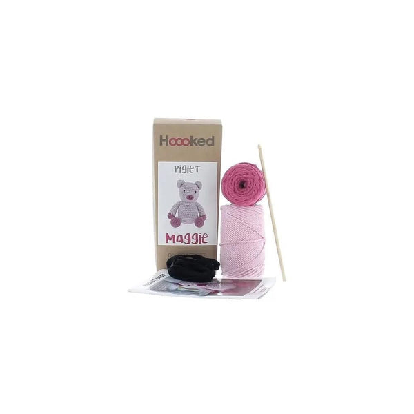Hoooked Amigurumi DIY Kit with Eco Barbante Yarn Piglet Maggie - Trying your hand at amigurumi for the first time or just a want a quick project? This easy amigurumi project is just what you need! Each kit contains sufficient yarn to crochet your amigurumi, a crochet hook and an adorable Hoooked pattern! You just add stuffing and you're on your way to crocheting cuties! This complete DIY crochet set consists of: Hoooked Eco Barbante cotton yarn, bamboo crochet hook 6mm, black left overs for finishing touches, and Hoooked pattern. Care: machine wash warm 105F. Lay out horizontally for drying. Eco Barbante yarn contains 85% recycled cotton and 15% other recycled fibers.