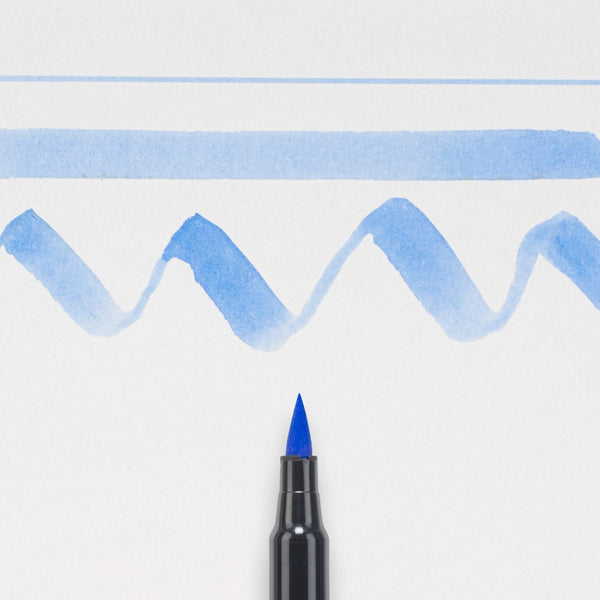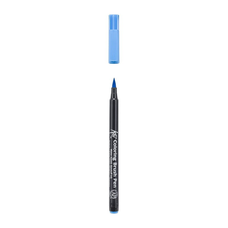 Koi Colouring Brush Pen - Aqua Blue. Ideal for drawing, illustration, designing & sketching! These brush pens have a flexible brush tip with which you can simply draw lines of various thicknesses. The ink is water-based and enables wonderful colour gradations to be created. Pigma Micron is recommended for outlining before colouring with this item. Available in 48 colours & a blender, each sold separately.