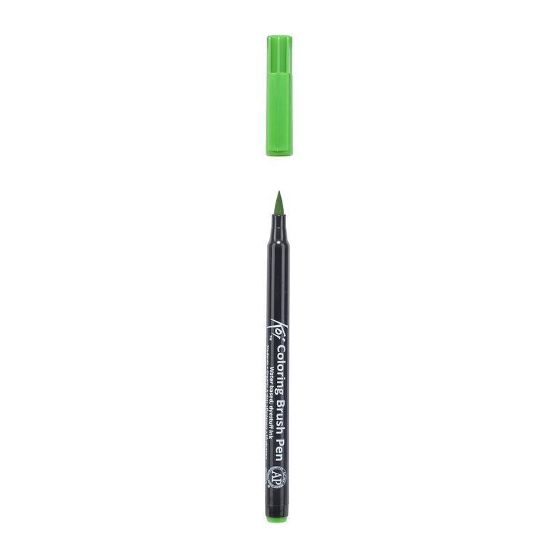 Koi Colouring Brush Pen - Emerald Green. Ideal for drawing, illustration, designing & sketching! These brush pens have a flexible brush tip with which you can simply draw lines of various thicknesses. The ink is water-based and enables wonderful colour gradations to be created. Pigma Micron is recommended for outlining before colouring with this item. Available in 48 colours & a blender, each sold separately.