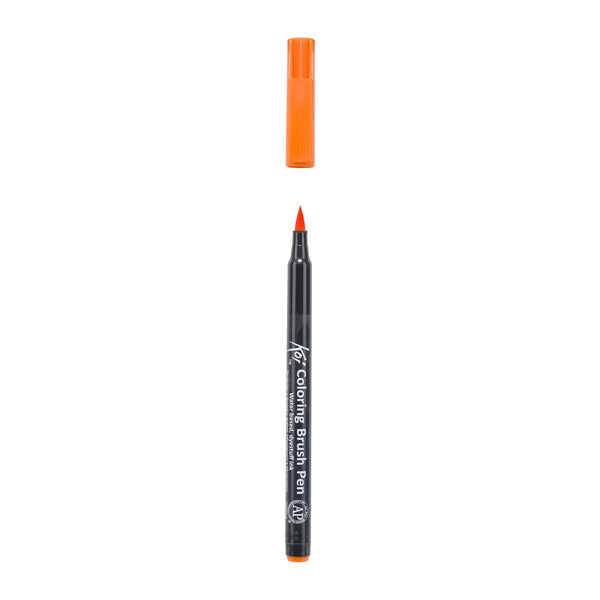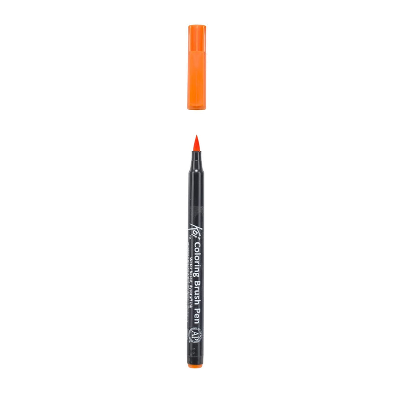 Koi Colouring Brush Pen - Orange. Ideal for drawing, illustration, designing & sketching! These brush pens have a flexible brush tip with which you can simply draw lines of various thicknesses. The ink is water-based and enables wonderful colour gradations to be created. Pigma Micron is recommended for outlining before colouring with this item. Available in 48 colours & a blender, each sold separately.