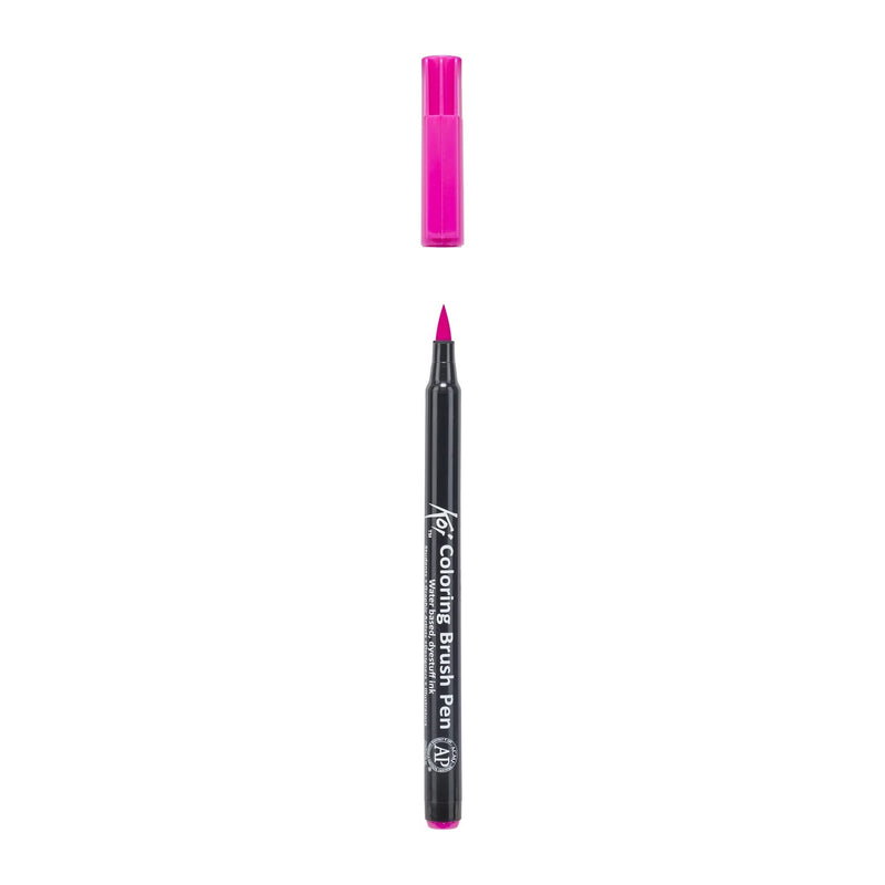 Koi Colouring Brush Pen - Rose Red. Ideal for drawing, illustration, designing & sketching! These brush pens have a flexible brush tip with which you can simply draw lines of various thicknesses. The ink is water-based and enables wonderful colour gradations to be created. Pigma Micron is recommended for outlining before colouring with this item. Available in 48 colours & a blender, each sold separately.