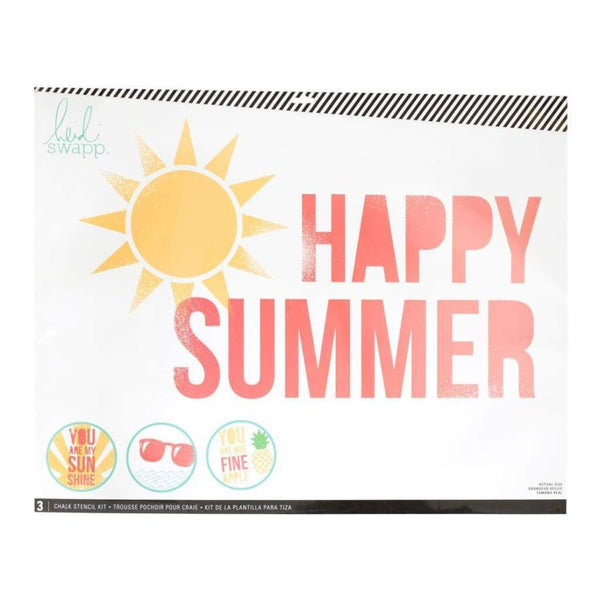 Heidi Swapp Chalk Art Stencils 27X21 inch 3 Pack - Happy Summer - Make decorating easy by filling in these stencils with multicolored chalk spray (sold separately). This package contains three 21x27 inch stencils in assorted designs
