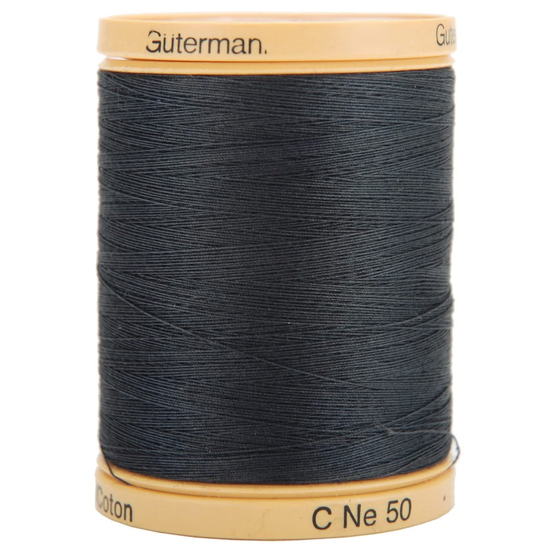 Gutermann Natural Cotton Thread - Solids 876yd - Iron Grey - 100% mercerised natural cotton. Fine but strong for those who prefer to sew with natural fibres. Suitable for hand and machine sewing. 875yds/800m.