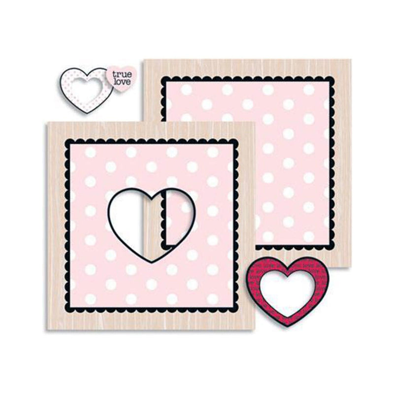 Teresa Collins Faux wood covers - crush. Teresa Collins Faux Wood Covers are specially designed to work with 8"x8" paper and 8"x8" page protctors. Punch and bind your projects with Bind-it-all (sold separately) . These centre hearts on the album are die-cuts. Press the die-cuts out to reveal the heart shaped album window and you will have two frames and one heart-shaped embellishment to use in your project.