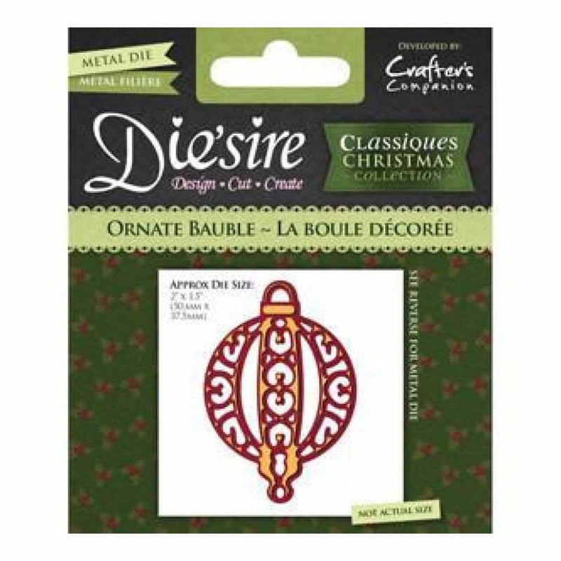 Die'sire Christmas Classiques Die - Ornate Bauble - Aprox size: 2 x 1.5 (50mm x 37.5mm)- [FC40]