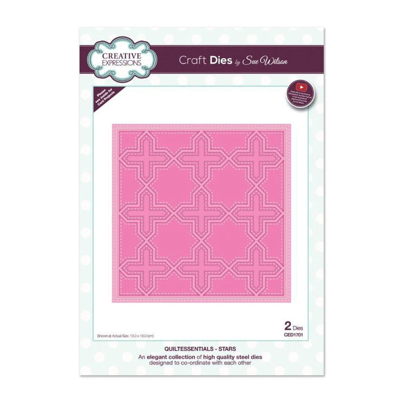Creative Expressions Craft Dies - Quiltessentials Stars - An elegant collection of high-quality steel dies designed to co-ordinate with each other. Designed by Sue Wilson. Contains: 2 craft dies. Various sizes: Size of largest die: 130mm x 130mm approx. Works with most tabletop die cutting machines, such as the Cuttlebug, Big Shot, Grand Calibur, eBosser etc.