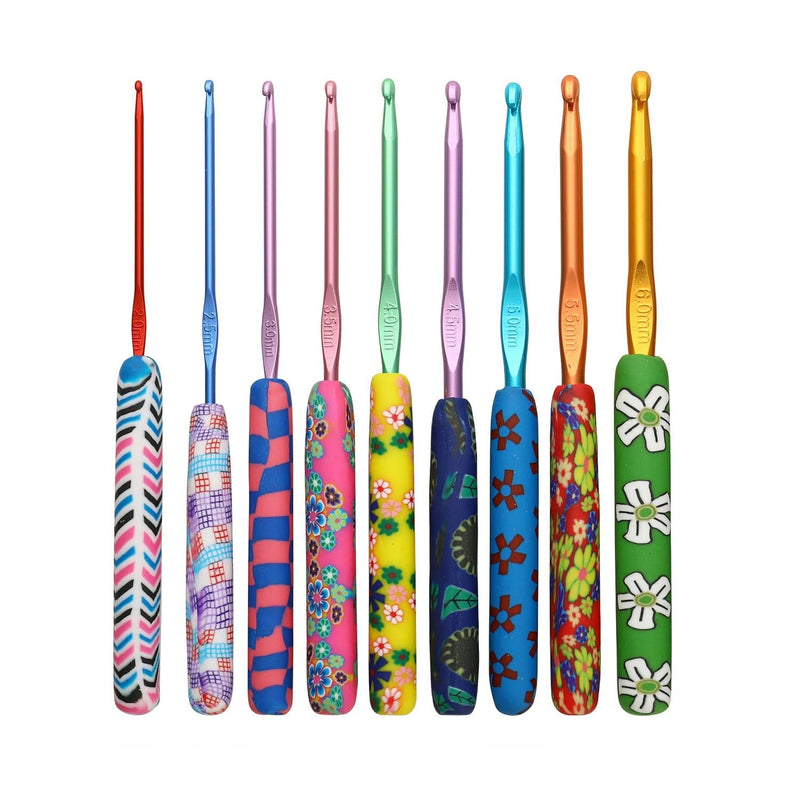 Universal Crafts Crochet Hook Set - Mixed Floral 9pk. These crochet hooks are comfortable and easy to grip while working on all crochet projects. Every hook is marked with numbers and Letter, so you’ll never be confused. Crochet Hooks Size: 2.0mm, 2.5mm, 3.0mm, 3.5mm, 4.0mm, 4.5mm, 5.0mm, 5.5mm, 6.0mm. Package Includes: Nine Crochet Hooks.