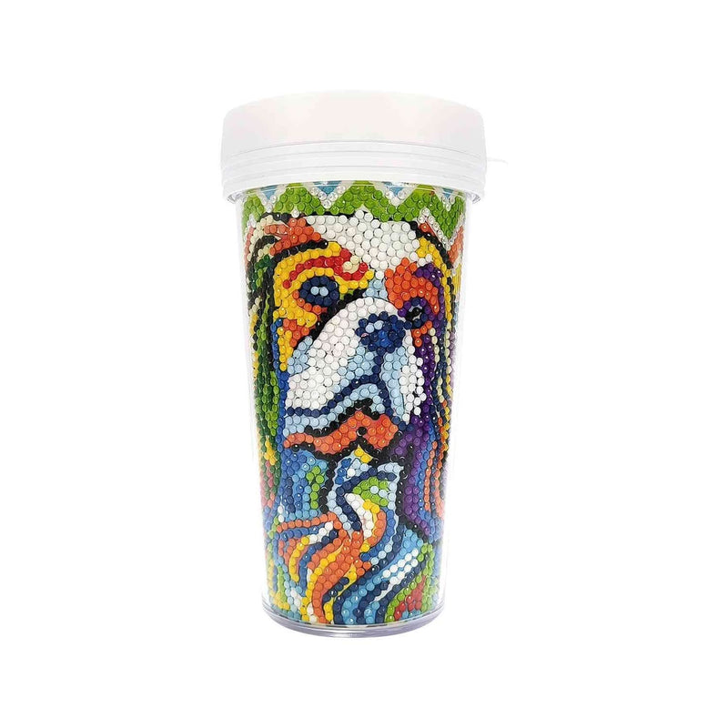 Poppy Crafts Diamond Art Tumbler Kit #7 - Dog. This Tumbler kit offers a fun and creative way to personalize your drinkware. This kit includes everything you need to decorate the tumbler with sparkling diamond art, creating a dazzling and unique design. Perfect for craft enthusiasts, it's a great project to add a personal touch to your everyday tumbler while showcasing your artistic flair. Available in a range of different designs, each sold separately. Kit Includes 1x 470ml/16oz plastic tumbler (9.5cm x 17.5cm), 1x adhesive design sheet, diamond dots, 1x Stylus, 1x diamond dot tray, and 1x piece of soft wax, and 5x small zip-lock bags providing all the necessary tools for your artistic creations.