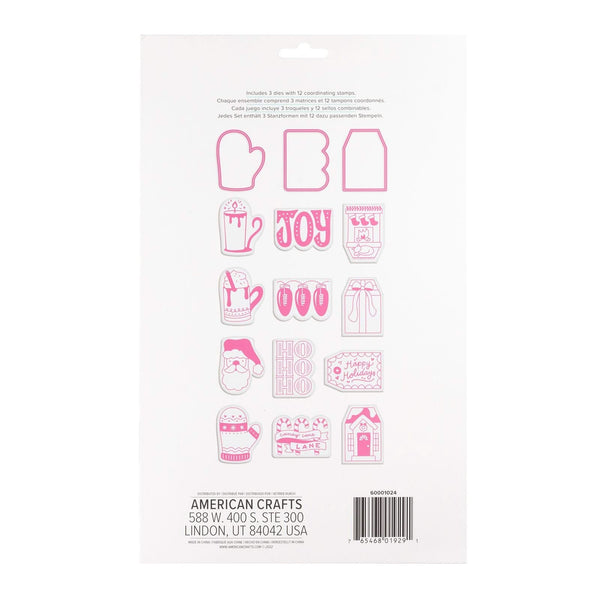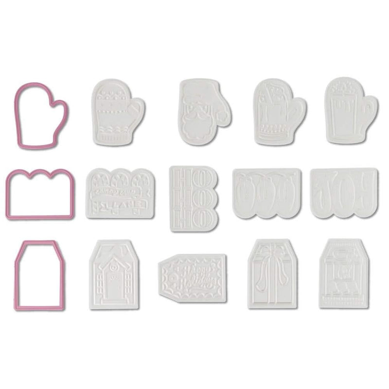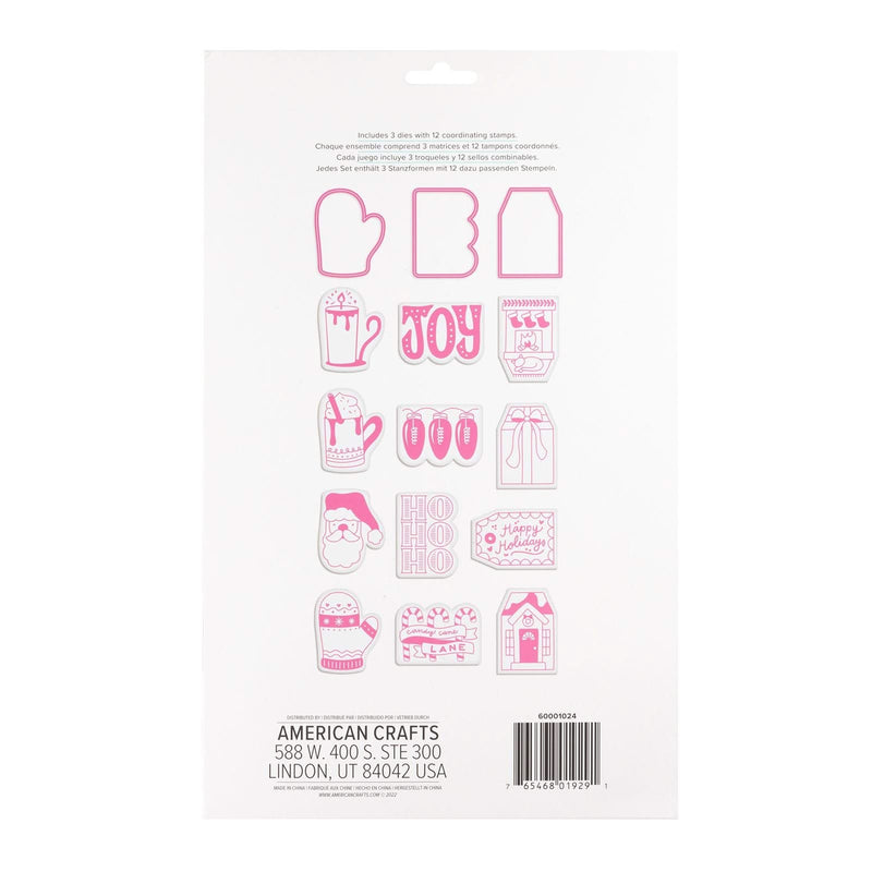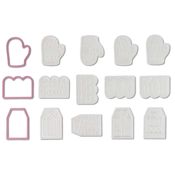 We R Die & Stamp Shifters - Mitt Set. Add the perfect final festive touch to your projects with this stamp and die set. They are fun to use with scrapbooks, cards, journals, planners, and more. For use with leading die-cutting machines, sold separately. This package contains 3 dies and 12 stamps. Each piece is approximately 6cm x 7cm in size.