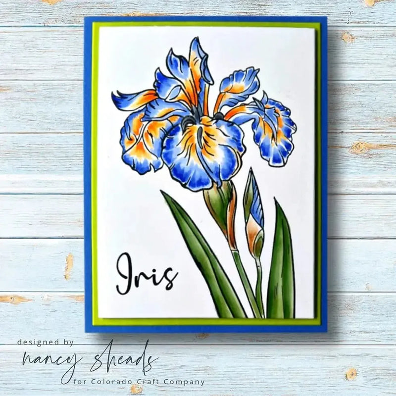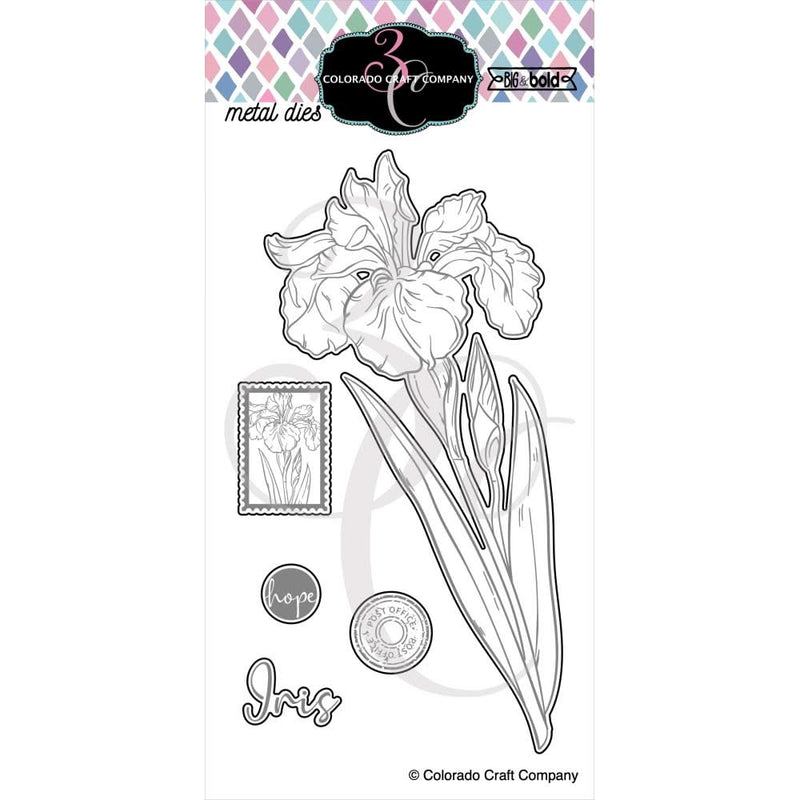 Colorado Craft Company Metal Die Set Iris Wishing-Big & Bold - This five piece thin metal die set, Iris Wishing is part of the Big and Bold Collection from Colorado Craft Company. This die set coordinates with the Iris Wishing stamp set (sold separately) and cuts out the iris, the stamp, the word Iris in script font, the postmark, and the circle with hope in the middle. These dies are compatible with leading die cutting machines (sold separately). These dies can be used for cards, scrapbook pages, tags, journals, and other paper crafting projects. The largest die measures 4" x 2.8" and the smallest die measures 0.8" x 0.8". This die set is made in the USA.