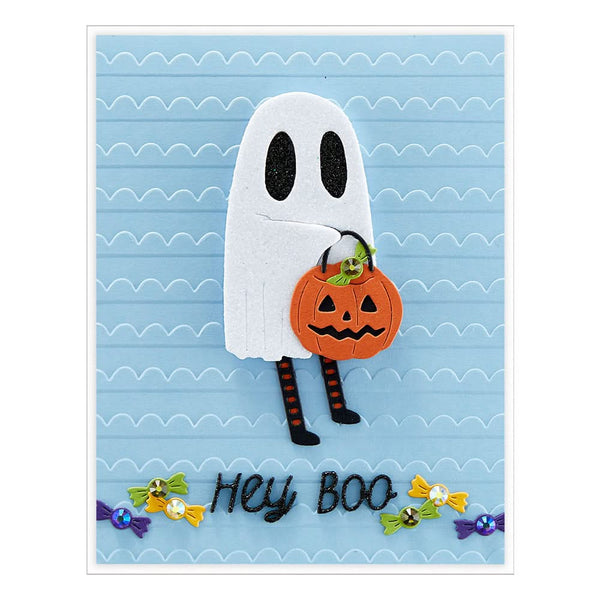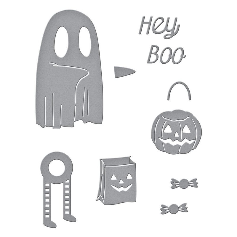 Poppy Crafts Cutting Dies #385 - Halloween Collection - Hey Boo. Create amazing spooky papercraft projects with this Halloween cutting die design! These are a great idea for all your cards, scrapbook pages, tags, journalism, planner pages and so much more. These Cutting Dies are designed to cut through paper, cardstock and other thin materials and are compatible with most leading die-cutting machines (sold separately). Includes 7 dies. Approximate Size: Smallest 1cm x 1.5cm, largest 4cm x 7cm.