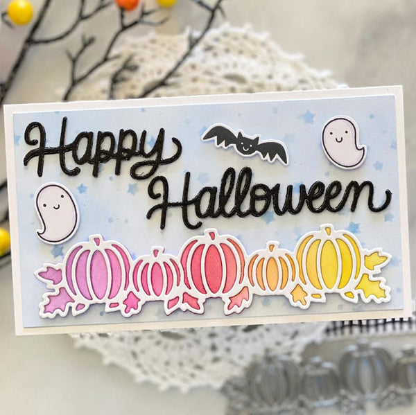 Poppy Crafts Cutting Dies #394 - Halloween Collection - Pumpkin Border. Create amazing spooky papercraft projects with this Halloween cutting die design! These are a great idea for all your cards, scrapbook pages, tags, journalism, planner pages and so much more. These Cutting Dies are designed to cut through paper, cardstock and other thin materials and are compatible with most leading die-cutting machines (sold separately). Approximate Size: 3.5cm x 14cm.