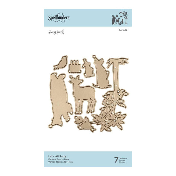 Spellbinders Shapeabilities Etched Dies - Let's All Party. These dies can be used on cards, scrapbook pages, tags, journals, and other paper crafting projects. These dies are compatible with leading die cutting machines (sold separately). This package contains Let's All Party: a set of seven metal dies measuring between .6 x 1.125 inches and 3 x 4.125 inches.