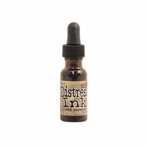 Tim Holtz Distress Ink Pad Re-inker 14ml - Old Paper. Re-Inkers can be used to re-ink Distress Ink Pads. Re-Inkers are available in a 0.5oz amber glass bottle with an eye drop applicator. Water based, fade resistant, acid free and non toxic. Create an aged look on papers, fibres, photos and more! Conforms to ASTM D4236. Comes in a variety of colours. Each sold separately.