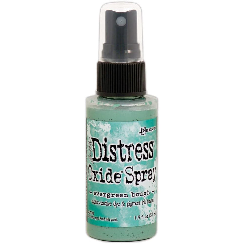 Tim Holtz Distress Oxide Spray 1.9fl oz - Evergreen Bough - Tim Holtz Distress Oxide Spray is a dye Tim Holtz Distress Oxide Spray is a dye and pigment ink fusion that creates oxidised effects when sprayed with water. Use for quick and easy ink coverage on porous surfaces. Spray through stencils, layer colours, spritz with water and watch the colour mix and blend. 1.9fl.oz