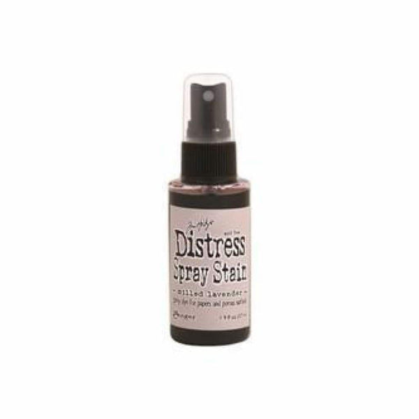 Tim Holtz Distress Spray Stain 1.9oz Bottle - Milled Lavender. Spray through any stencil or directly onto a porous surface. Create a blended effect by layering stain colours and spritzing with water. Included is one 1.9 fl oz bottle of water-reactive stain. Comes in a variety of colours. Each sold separately. Conforms to ASTM D 4236. Made in USA.