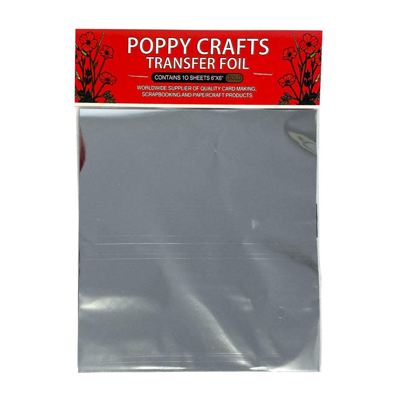 Poppy Crafts Transfer Foil 6in x 6in 10/pkg - Silver- Decorate cards, invitations, mixed media projects and more! This package contains ten 6x6 inch adhesive transfer foil sheets in Silver colour.