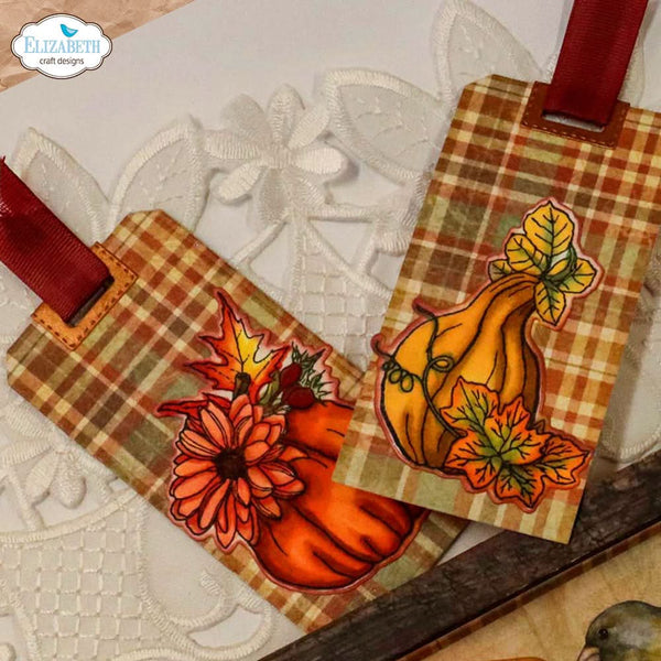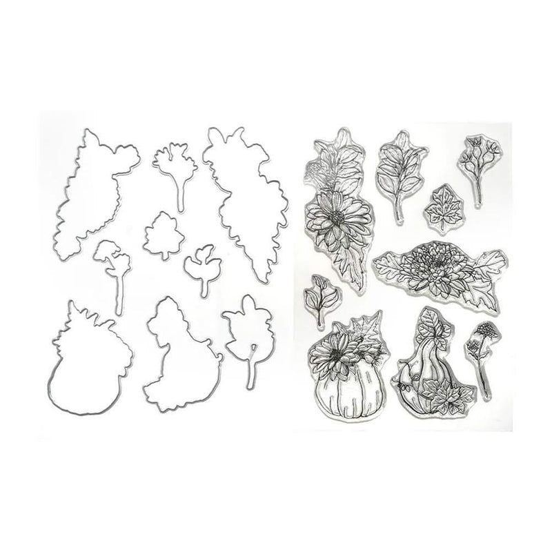 Elizabeth Craft Stamp And Die Set Autumn Harvest Florals - The Elizabeth Craft Designs December Romance Stamp and Die Set, from the Art Journal Specials December Romance Collection, is a delightful addition to your holiday crafting supplies. This set features nine wafer-thin dies, the largest of which measures approximately 2.6 x 3.1 inches (6.6 x 7.8 cm), and a 6 x 8-inch clear stamp set with twelve pieces. The stamps showcase charming designs such as hanging ornaments adorned with flourishes and snowflakes, a filigree Christmas tree, a wreath of baubles, pinecones, Holly, and berries, as well as two labels that read "December to Remember" and "December Romance." The coordinating dies are designed to cut out the main objects from the stamps, making it easy to create beautifully detailed holiday projects.