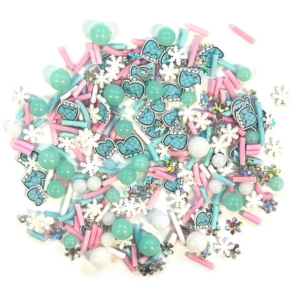 Buttons Galore Mix Upz Craft Embellishments 10g - Pastel Blizzard - These fun mixes will include a combination of Sprinkletz polymer clay pieces, Popz acrylic round embellishments, Crystals iridescent flat black gems, brilliant iridescent PVC plastic shaped confetti sequins and other complimentary embellishments. This package contains 10 grams of Mix Upz craft embellishments.