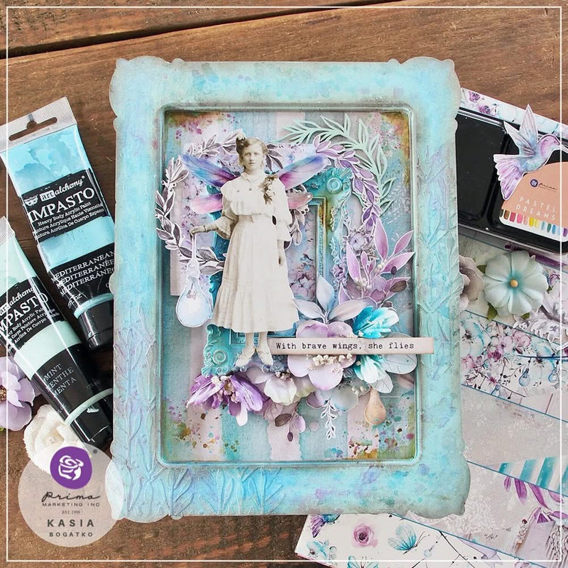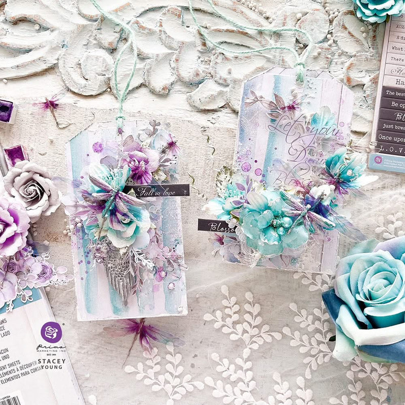 Prima Marketing Mulberry Paper Flowers Serene/Aquarelle Dreams - Beautifully handmade, Prima flowers are always delicately detailed. Coordinating with the Aquarelle Dreams collection by The 3 Girls Tale, this stunning purple vine is a new concept designed by the designers themselves. The flowers have an ombre effect with a detailed stamen centre while the leaves have been given a white washed effect. There are four flowers on the vine with four petals on each flower, making the vine easy to use as a whole, or divide up for your projects. One-piece.