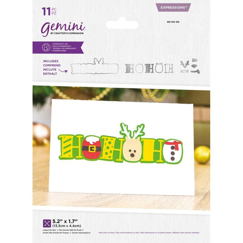 Crafter's Companion Gemini Expressions Dies - Ho Ho Ho - Set of 11 dies to create a layered sentiment. Largest die measures 5.2in x 1.7in (13.3cm x 4.4cm). Ideal for adding a statement to Christmas cards or tags. Compatible with most major die cutting machines (sold separately).