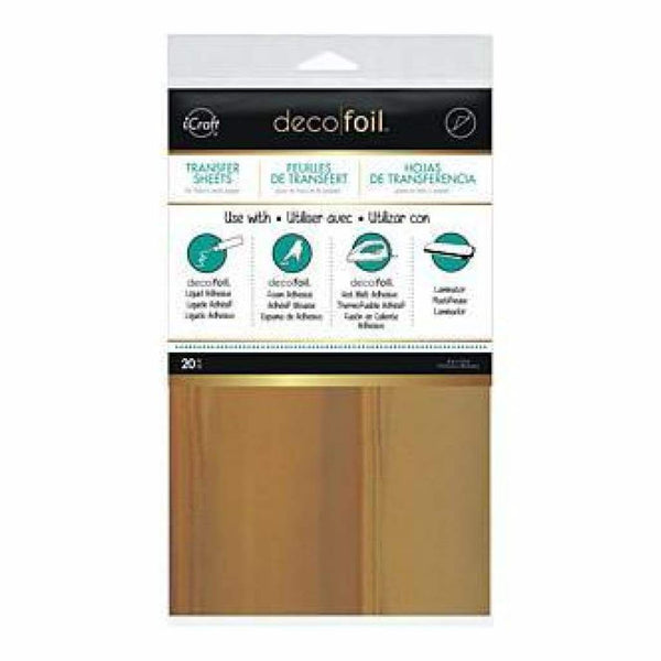 Deco Foil Transfer Sheet 6in.X12in. 20 Pack- Rose Gold - Great for use on fabric paper wood and other porous surfaces. Apply with Deco Foil liquid adhesive foam or iron-on sheets. Acid-Free washable on fabrics made in the USA.