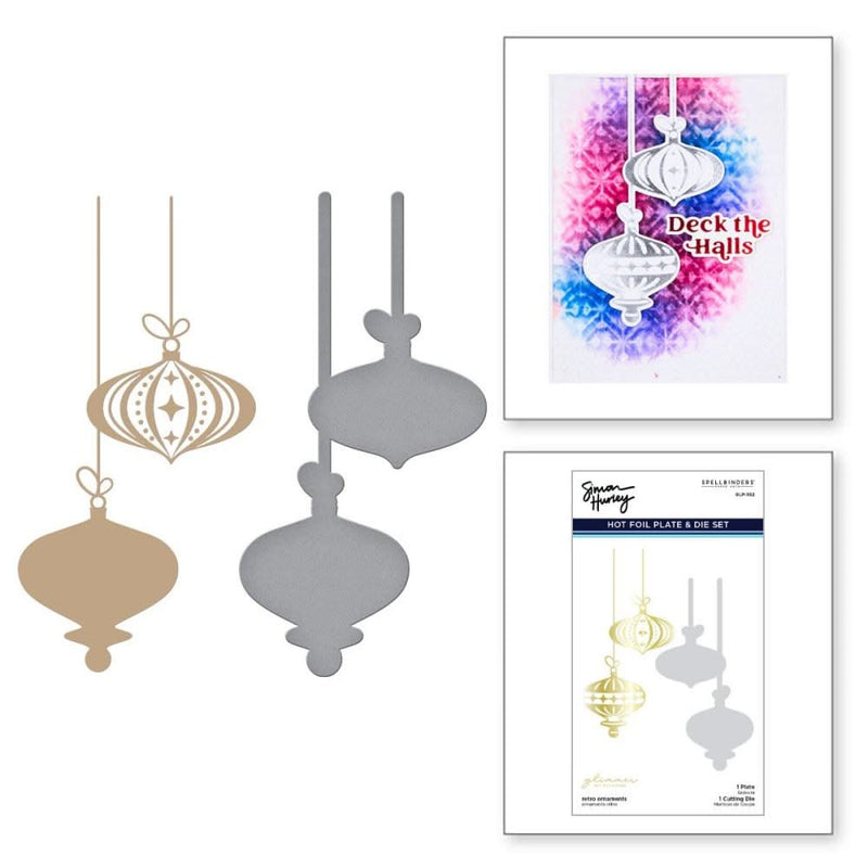 Spellbinders Glimmer Hot Foil Plate & Die By Simon Hurley - Joyful Christmas - Retro Ornaments*