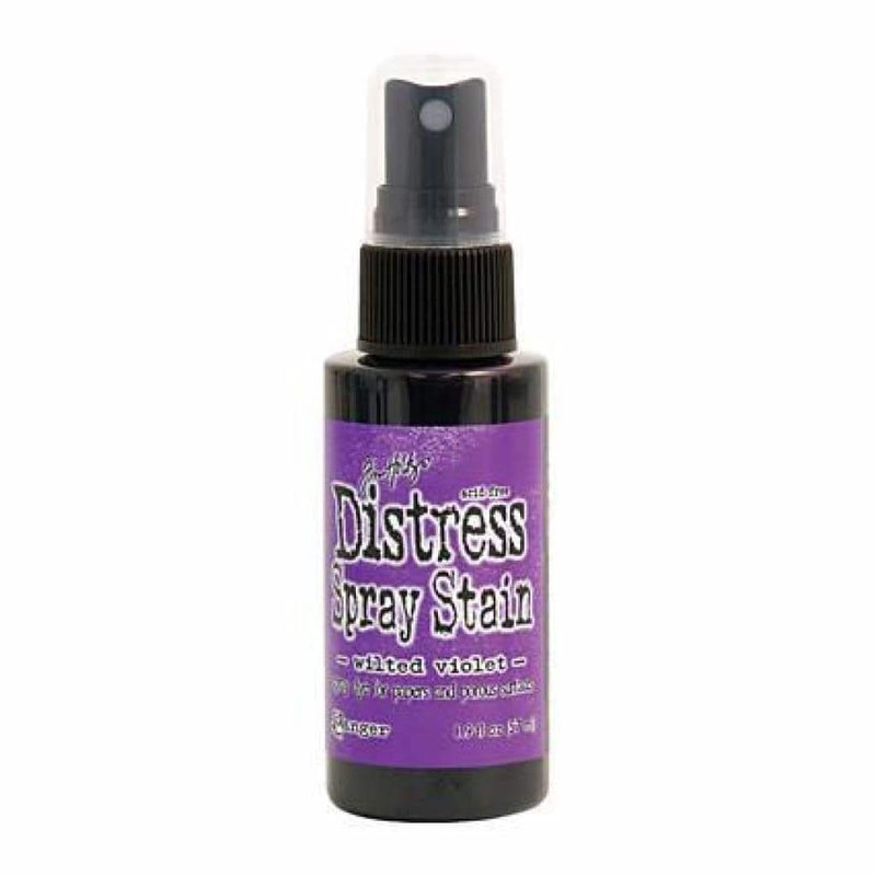 Tim Holtz Distress Spray Stain 1.9oz Bottle - Wilted Violet. Spray through any stencil or directly onto a porous surface. Create a blended effect by layering stain colours and spritzing with water. Included is one 1.9 fl oz bottle of water-reactive stain. Comes in a variety of colours. Each sold separately. Conforms to ASTM D 4236. Made in USA.