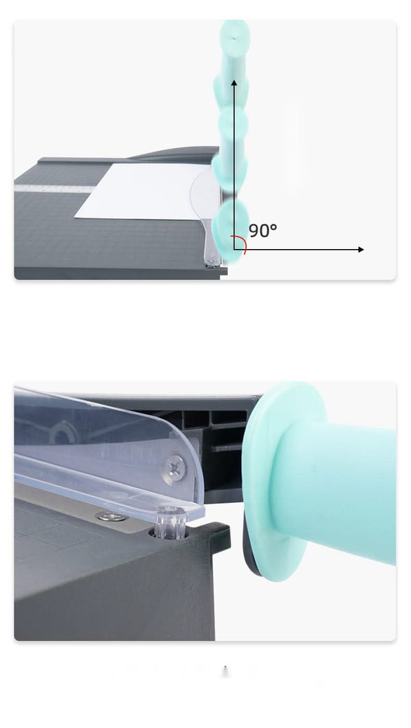 Featuring a lightweight yet sturdy black base with a printed grid design and a metal measurement ruler, it ensures accurate alignment for every cut. The sharp precision blade delivers clean cuts without tearing, while the guillotine handle is fitted with a soft grip for added comfort during use. With a 12" (30.5cm) cutting length, this trimmer is ideal for everyday crafting and professional projects alike.