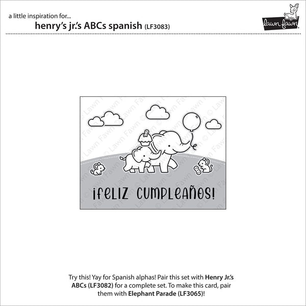 Lawn Fawn Clear Stamps 3"X2" (7.6cm x 5.1cm) Henry Jr.'s ABC's Spanish Add-On. This 14-piece clear photopolymer stamp set features the vowels with special marks above them, the letter n with a special mark above it, a small letter i, and an upside-down question mark. These stamps adhere to acrylic blocks and can be used with your favourite inks, markers, embossing powders, and other crafting mediums (sold separately). They can be used on cards, scrapbook pages and other papercrafting projects. Made in the USA.